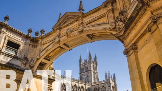 Durante 2000 años, el agua caliente natural de Bath ha atraído a los viajeros a través de verdes prados a una ciudad construida de piedra dorada. Hoy en día, sus amplias terrazas y elegantes medias lunas hacen de ésta una de las ciudades más hermosas de Gran Bretaña. Bath está reconocida como Patrimonio de la Humanidad por la UNESCO por su majestuosa arquitectura del siglo XVIII y sus Baños Romanos bellamente conservados.